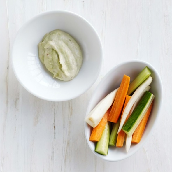 8Servering:Dyp grøntsagerne i avokadodippen. Mums