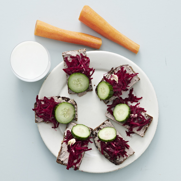 6Fordel råkost på rugbrød og pynt til sidst med agurk