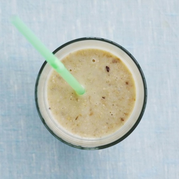 Drik en fyldig og mættende smoothie på mælk, havregryn og modne bananer. Banan giver sødme til smoothien, mens havregryn giver fylde og fibre.